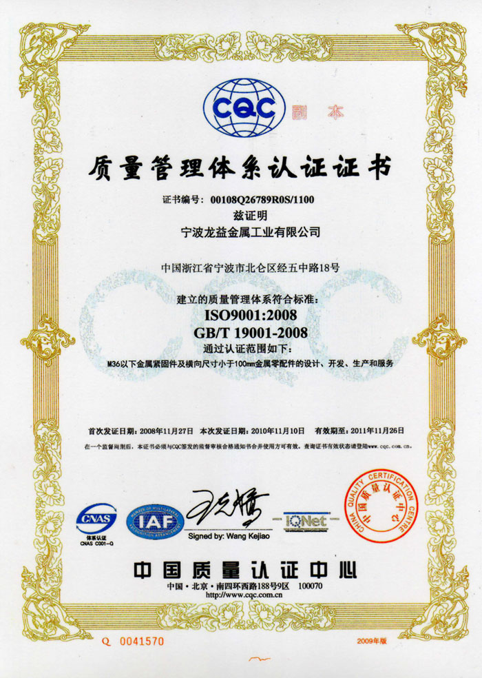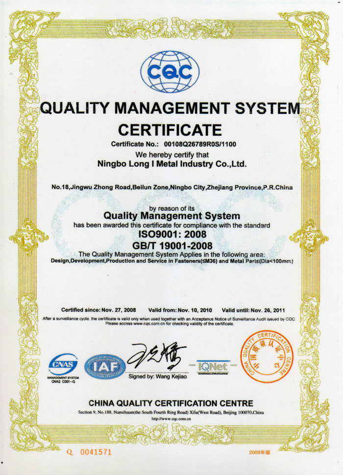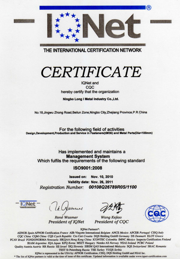 Ningbo Long I Metal Industry Co., Ltd. as one of the leading most successful and experienced professional chinese manufacturers in stainless steel fasteners. we have specialized in stainless steel nuts. Our company was founded in 1994 and received the ISO 9002 Certification in 1998 and the new Certification ISO 9001: 2008 accreditation in 2008. We have strict quality control procedures and have enjoyed a good reputation by offering the best quality and delivery time in global markets, such as Japan, European, American and indeed Domestic markets.